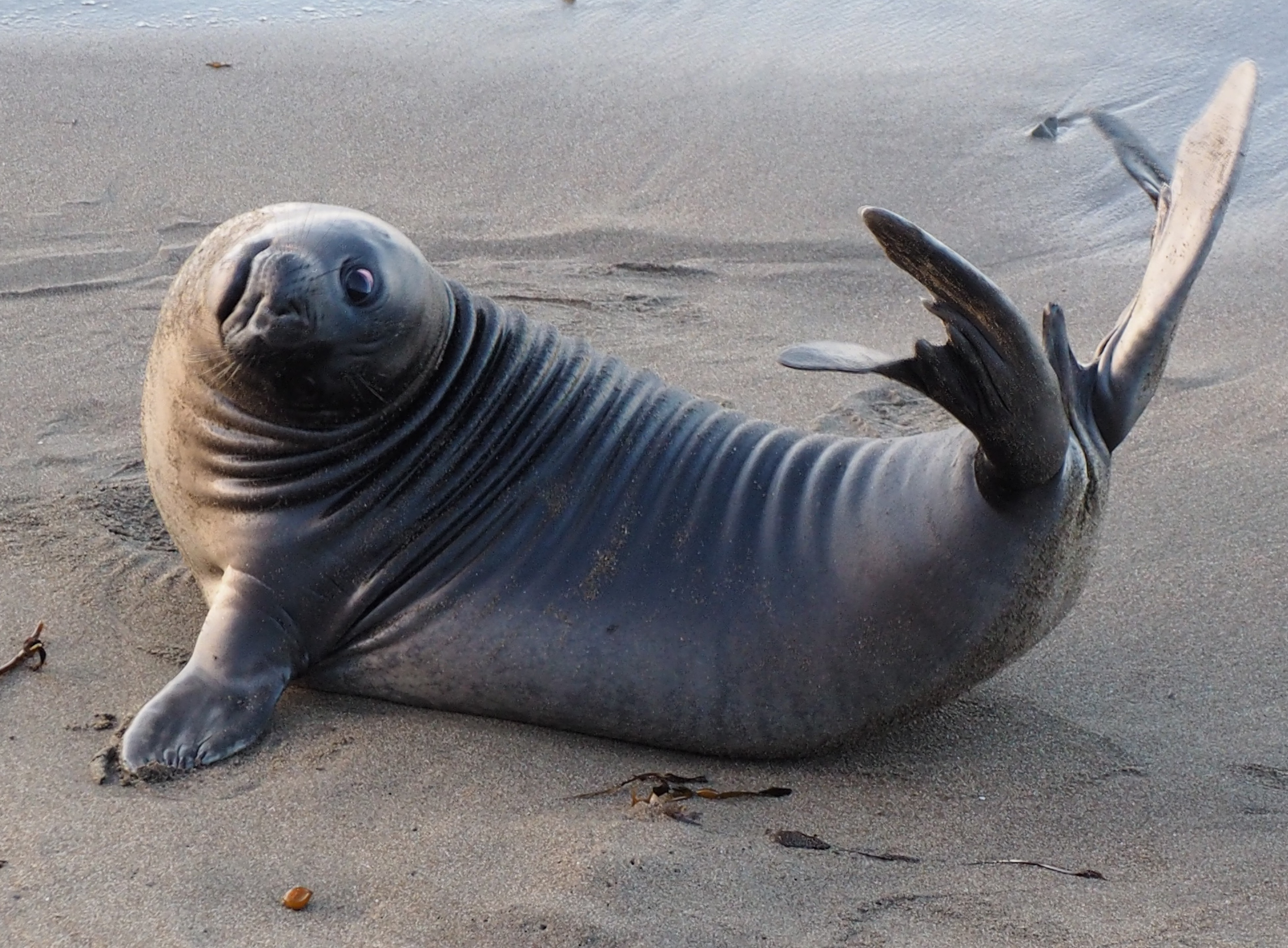 Out on the Piedras Blancas bluffs near San Simeon, CA, real soon, there will be a whole lot of luvin’ going on.  Mature male elephant seals swim 2500 miles south (from Aleutian Islands) just to get their freak on with the lady elephant seals (pregnant and swimming in from open sea) on the beach. After the ladies give birth and wean their pups, they are ready for the breeding.    And, believe me, these 2-ton boys are on it.