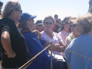 Me (in blue jacket and hat) , surrounded by visitors at Piedras Blancas. Photo by C. Chesney