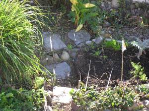 Altho, I must say every garden angel in the vicinity did come to my rescue. My eyeball was perilously close to the rock’s pointed end. It was if one of them said, “To the rescue, cuz she’s about to go down–again.”