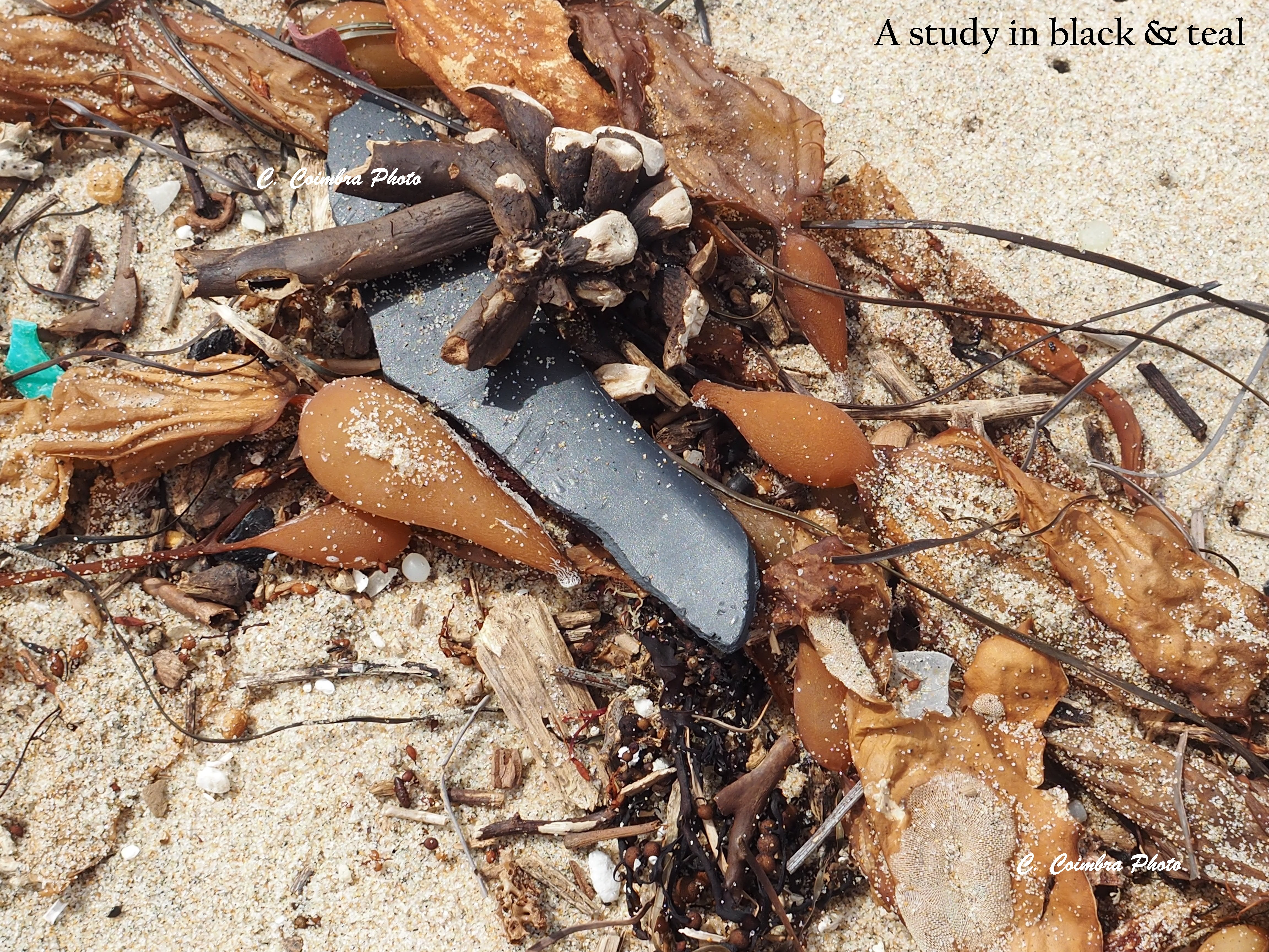 The endless specks of plastic waste that colored mound upon mound of kelp, stunned me from my dreamy stroll into a photographic reality check.