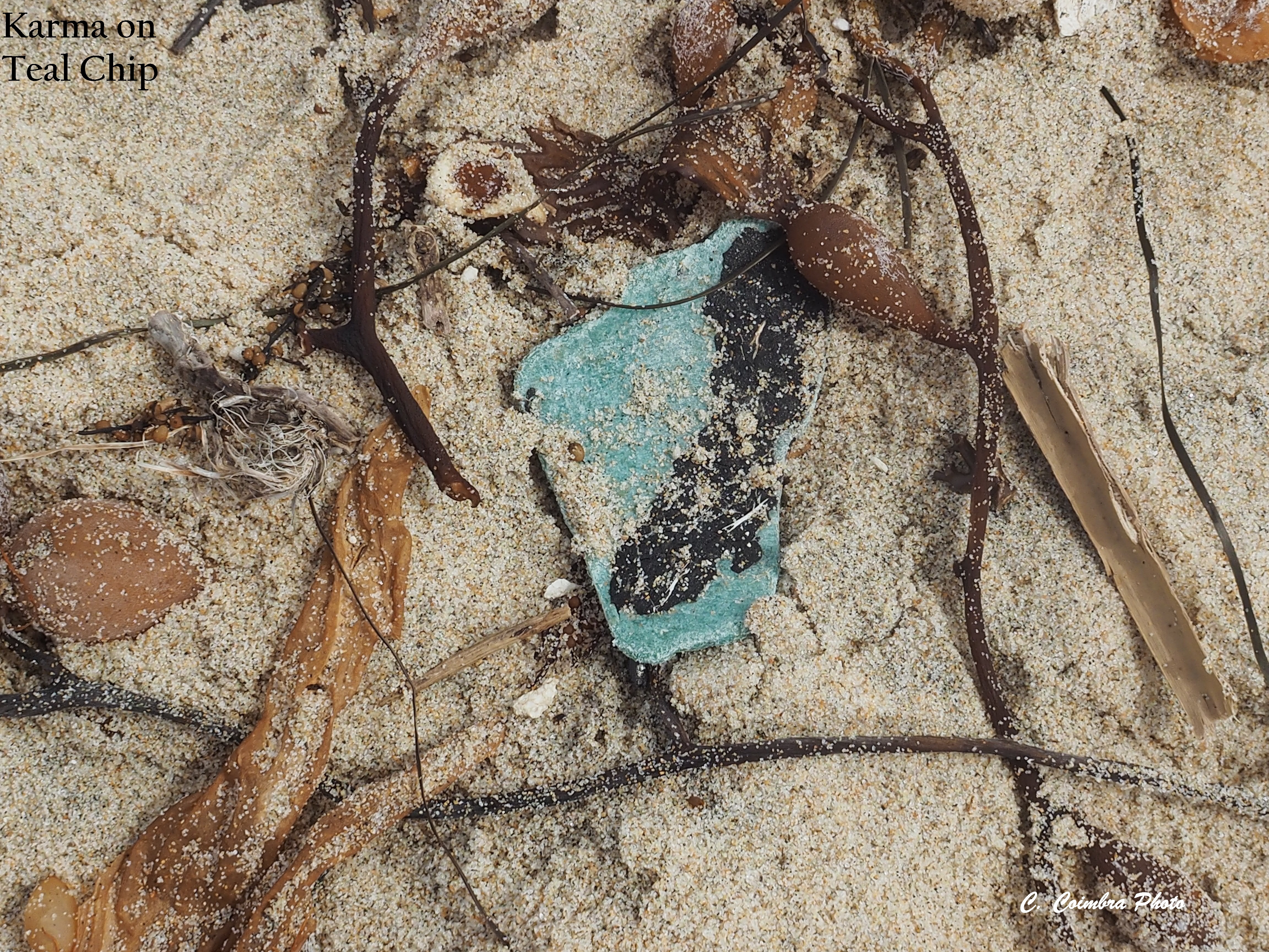 “Not likely. I watched a ranger go thru early this morning and pick up trash on the beach. And these pieces are so small, I suspect they’ve been in the water for a bit, have broken down into these fragments, and here we are looking at them,” I pontificated.