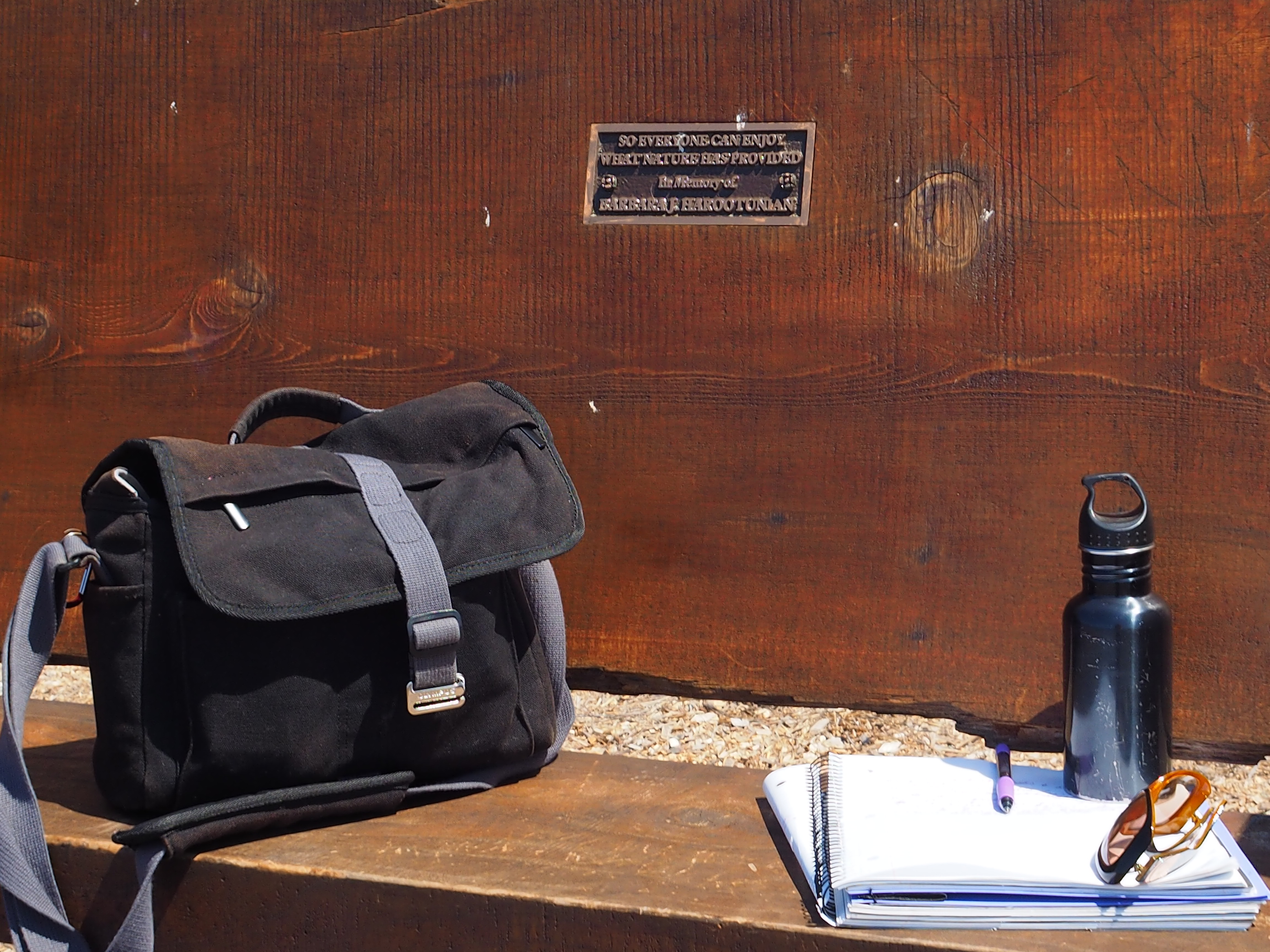 For this vignetted view from a field-anchored bench, I give honor to the memory of a woman I don’t know. Her name, Barbara, is etched on a bronze plaque on the back of where I sit and states, “So everyone can enjoy what nature has provided.”