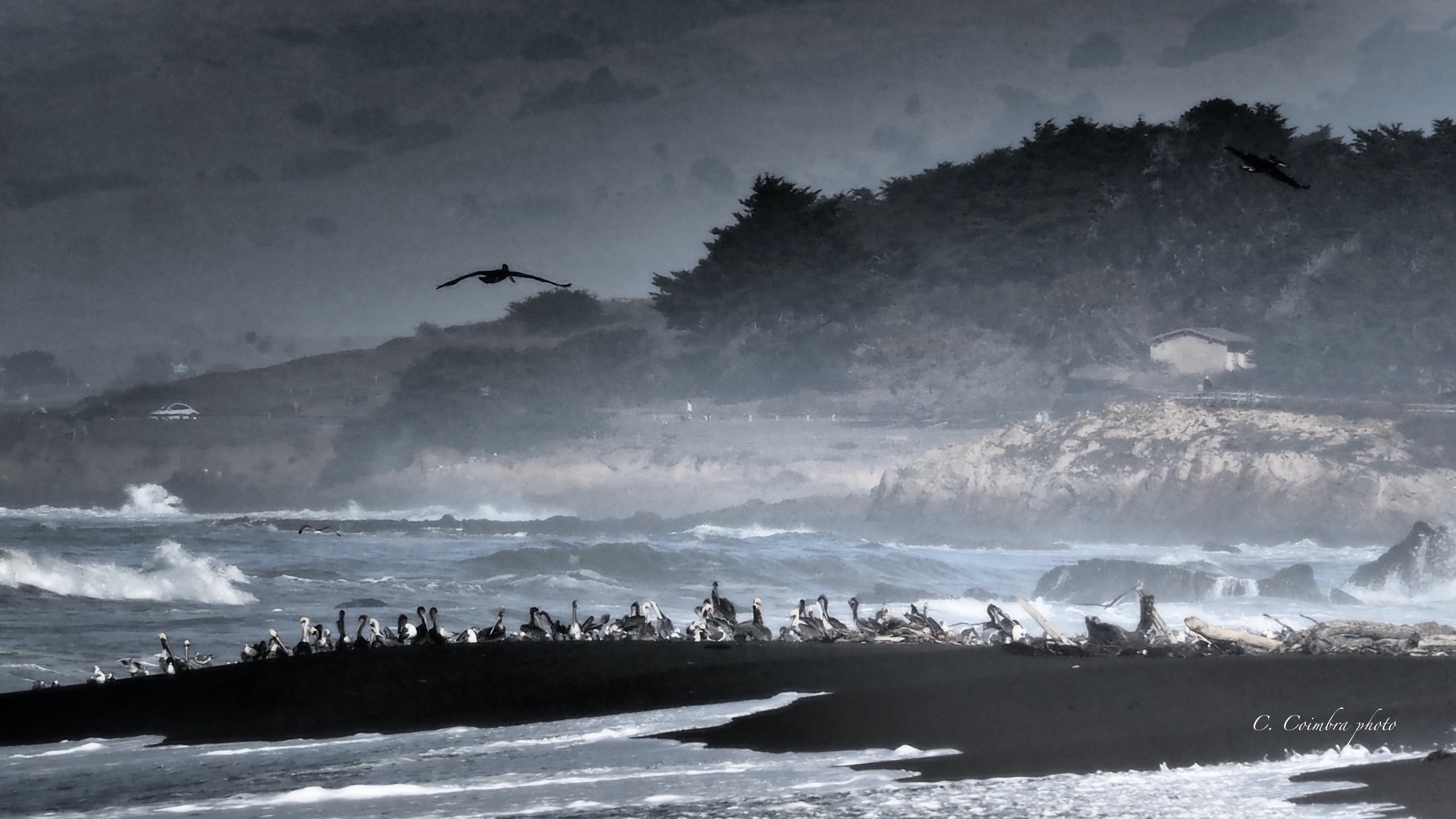 December’s Pacific Ocean along California’s central coast takes on near-neon shades of blue and teal. Incoming waves have shed summer’s passiveness. They roll in faster.  They croon louder when they reach the rocky shoreline. They fill the air with salt that clings to your lips. They make me clean Oly’s lenses often.