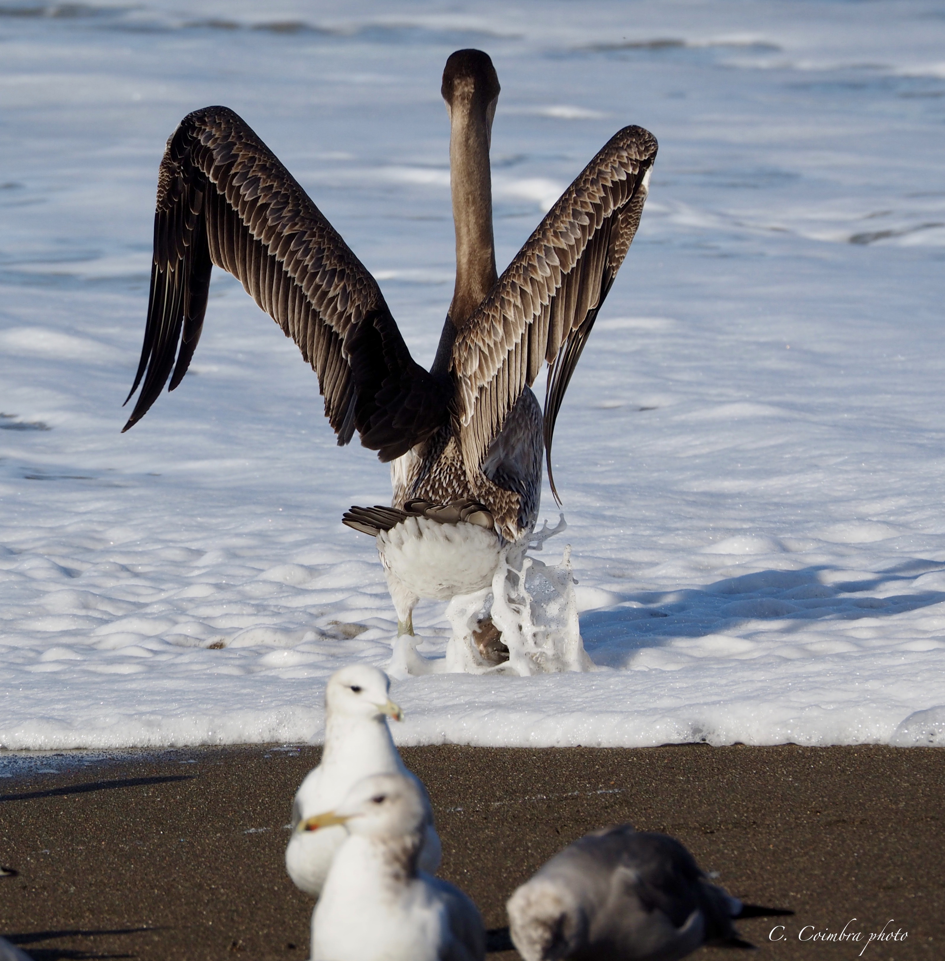 Camera gear held close, I did my best invisible walk up beach to see what I could capture.  Slowly, I planted the tripod in the sand, about 20 feet away from the pelicans. Snap. Snap. Half an hour later, I moved it in 10 feet. The pelicans could’ve cared less. Then I made the move within 5 feet. Soon, I was one of the pod. Exhilaration overcame me like the waves on the sand.