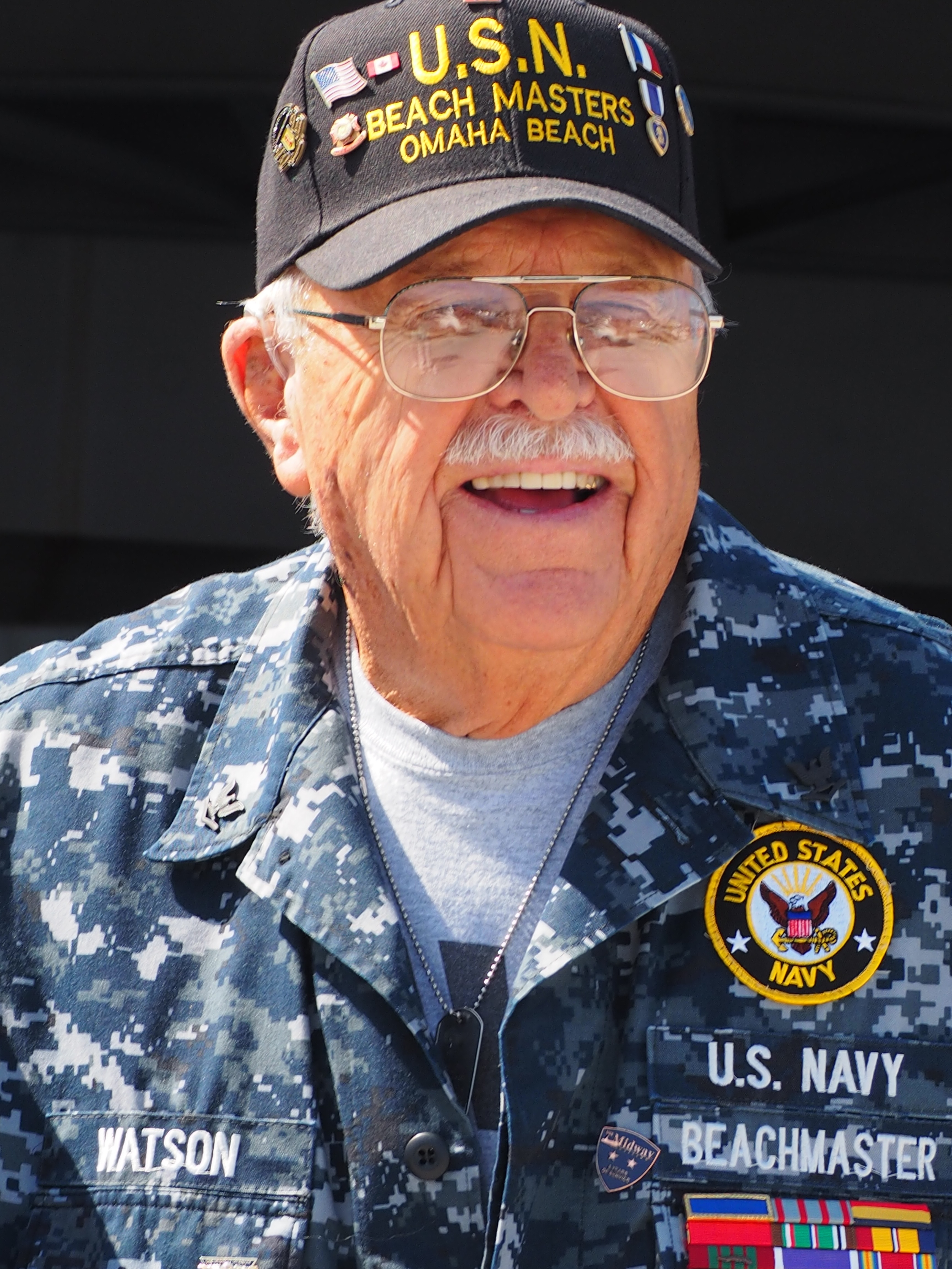 Bob Watson keeps history alive. The word “beachmaster” sets his place in history. Truthfully, when I met him last Saturday and saw the word embroidered in white threads beneath U.S. Navy on the octogenarian’s blue camos, I had to look the word up.