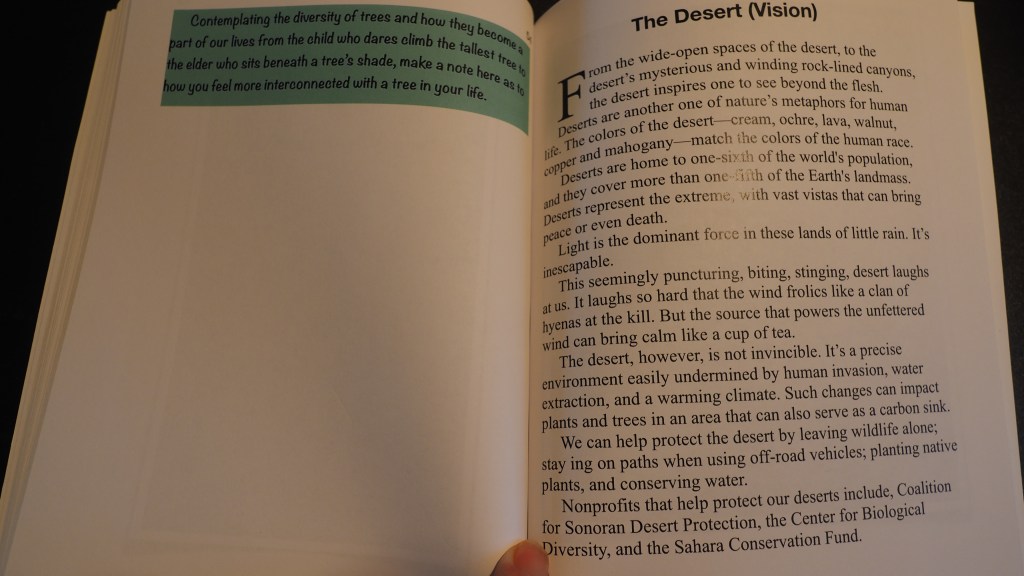 This isn’t a book you read and put down, you’ll want to pick it up again and again as you think back on many of these reflections. The author’s love and passion for our earth covers you like a warm blanket. It doesn’t matter where you come from or what you believe, this book involves each of us.