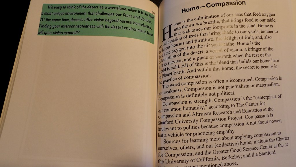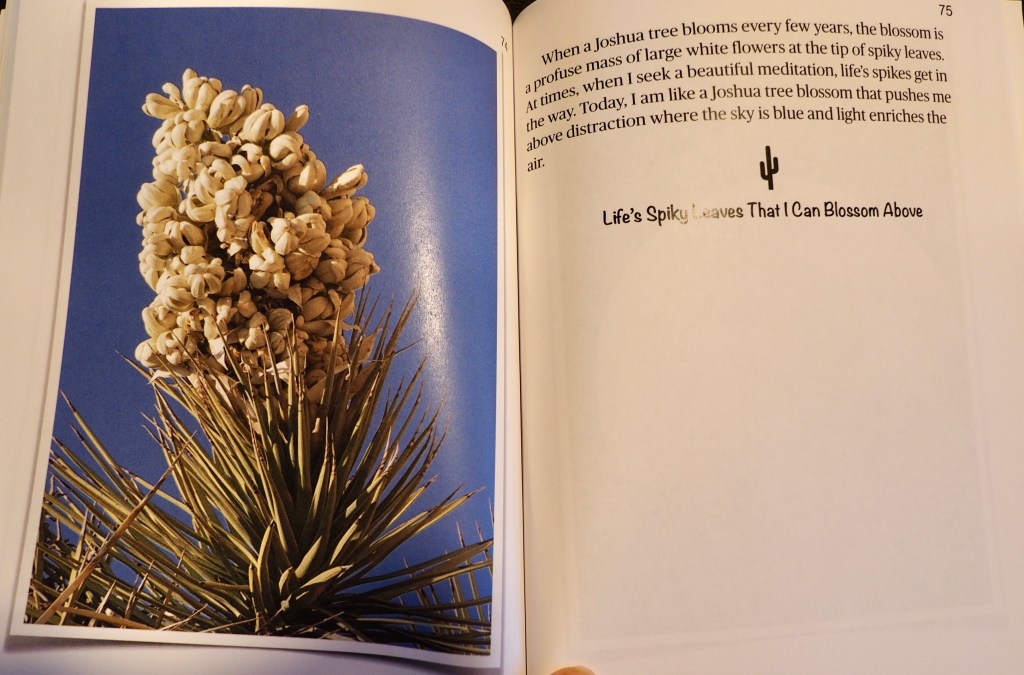 How many times have I experienced a wonderful meditation or a significant truth during a contemplative moment and wished that I had made note of it? The embarrassing truth: It’s a habit I failed to develop. On my “should’ve done” list and at friends’ suggestions who wanted more after reading my book “Connection with 48 Natural Contemplations,” I present, “Find Beauty, Seek Joy,” a companion book. This journal follows the outline of “Connection” by dividing it into four parts: The Sea, The Trees, The Desert, and The Home.