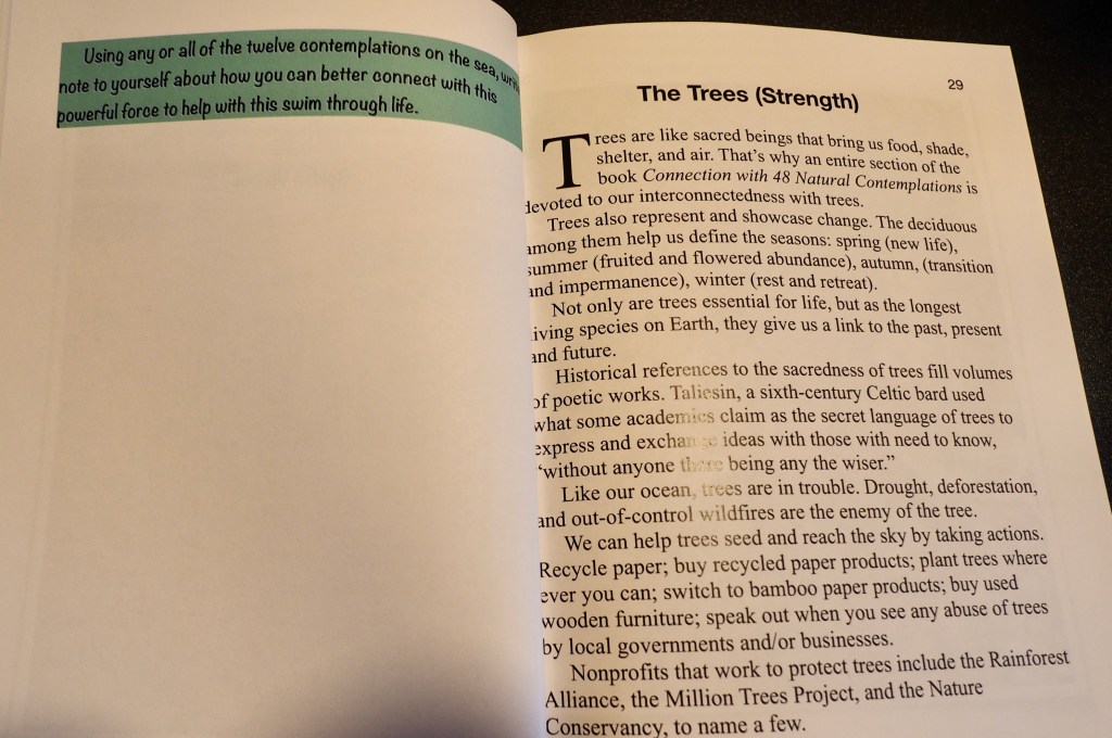 I’ve divided this work into four basic sections to use for connection and contemplation: the sea (representing life); among the trees (representing strength); the desert (representing vision), and the home (representing compassion). “Connection,” offers the reader 48 moments of contemplation and meditation that follow a review of our link to nature. Each section is derived from factual evidence of the condition of our world and our inner selves. This work is not meant to be religious. It is meant to help us collectively walk in peace and respect as we awaken to the life given us — regardless of one’s faith or belief system.